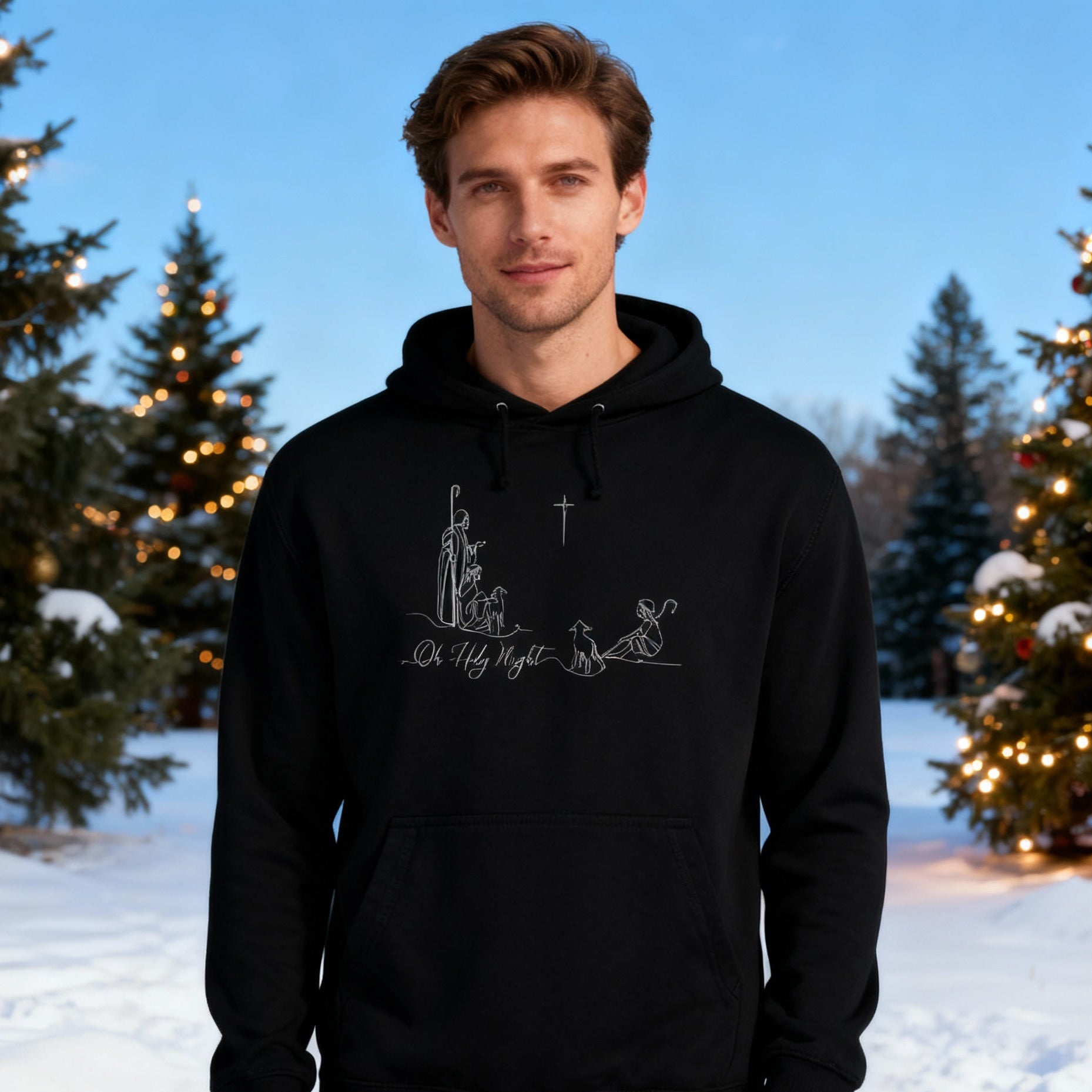 o Holy Night Sketch Christmas Hoodie